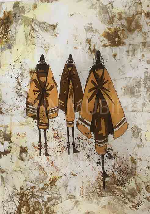 John Mubiru original African Batik of Masai elders. This painting was done 2021.