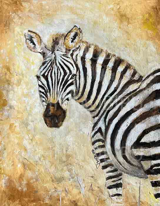 A Mubiru Wildlife oil painting of African Zebra in Southern Africa game reserve