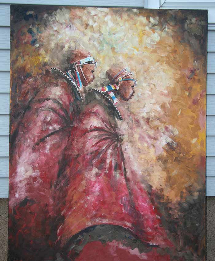 Classic John Mubiru impressionistic Massai oil painting 2014