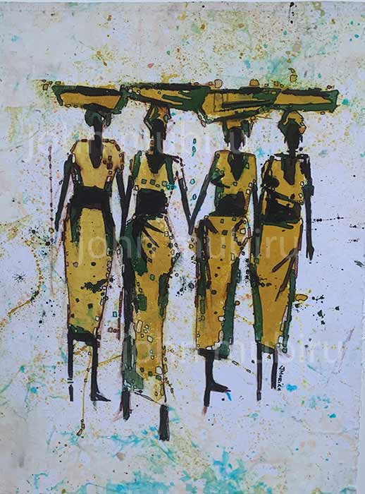 Ladies taking their produce to the market in Uganda An original African Batik Painting